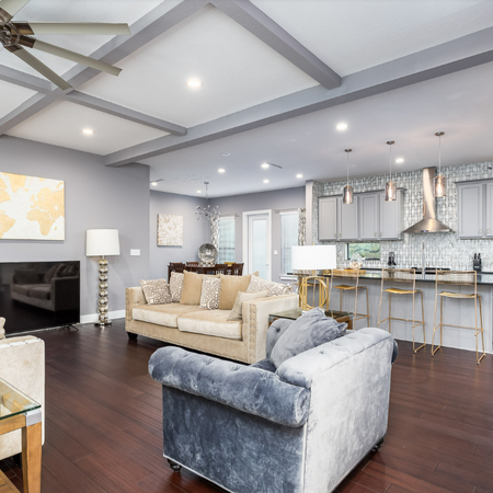 Open-concept layout connecting the kitchen, dining, and living spaces seamlessly
