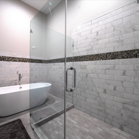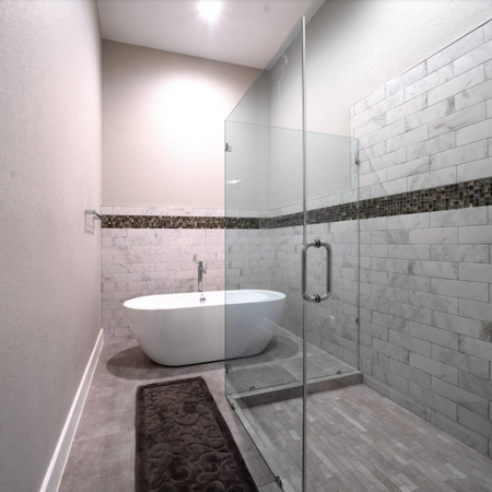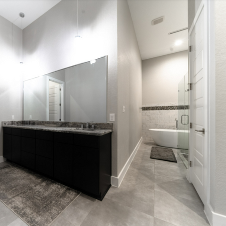Elegant bathrooms with modern vanities and sophisticated tile finishes